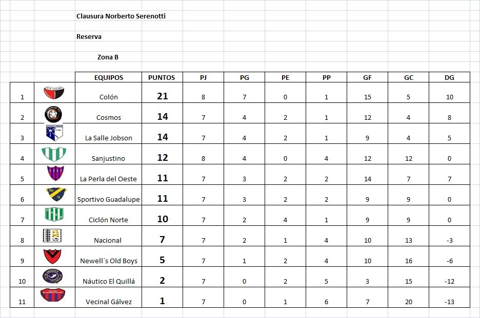 Reserva: Colón 3 (Thiago Velázquez, Mateo Giorza y Valentino Tschieder– Sanjustino. Árbitro: Mariano Serafini