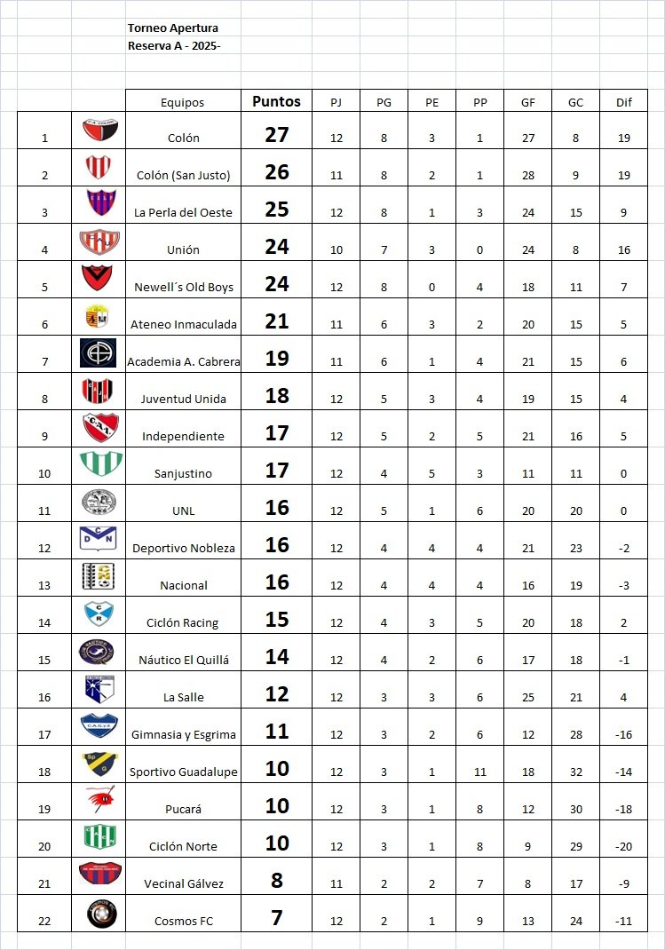 Reserva: Colón 1 (Gianfranco Hozgan) – Sanjustino 2 (2 de Thiago Díaz). Árbitro: Rubén Fernández