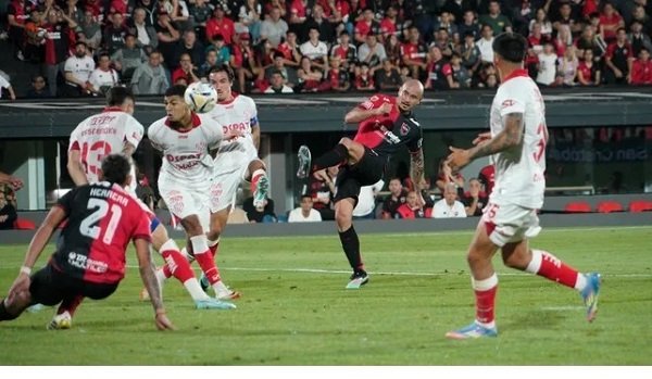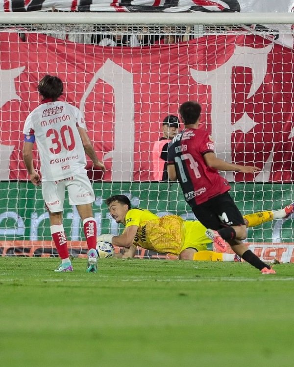 A los 37′, el Rojiblanco volvió a acercarse al arco de Newell’s con un centro desde la derecha que ejecutó Palacios y el cabezazo desviado de Maizon Rodríguez.