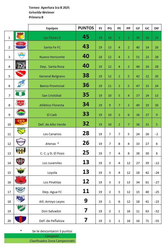 Reserva: Agua 0 – Las Flores 4 (Milton Hilbe, Santiago Gallo, Laureano Roa y Mateo Bauern). Árbitro: Valentín Córdoba