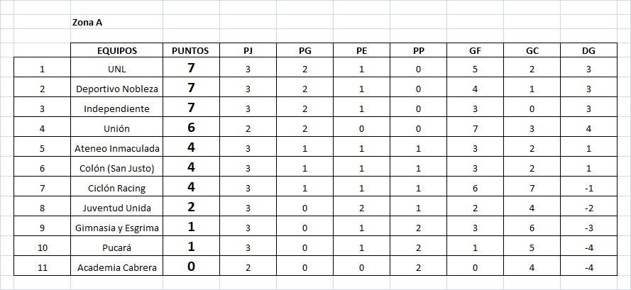 Reserva: UNL 1 (Ramiro Rotondo) – Ateneo 0. Árbitro: Bruno Levatti