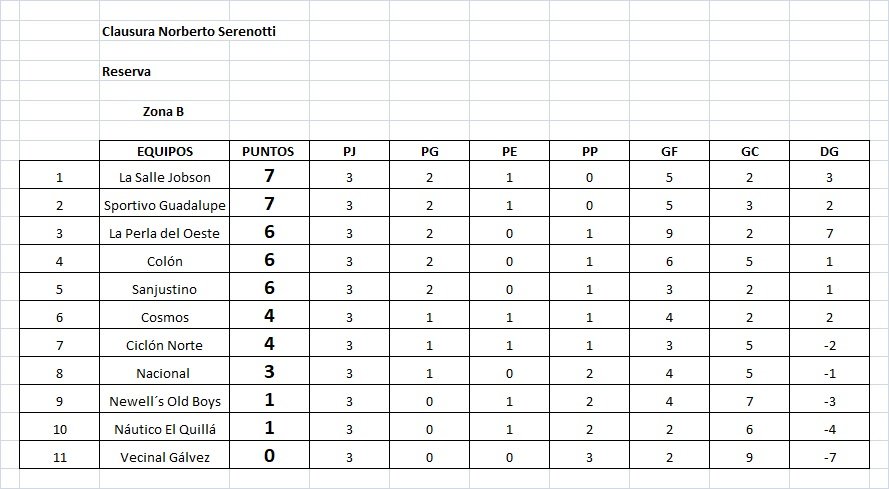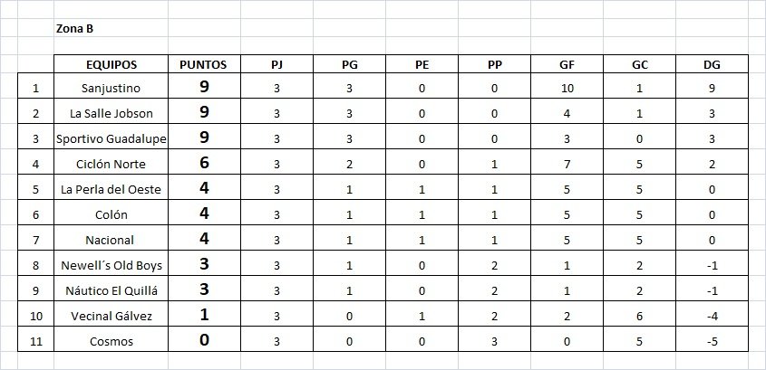 Reserva: Sanjustino 1 (Lautaro Peresín) – Cosmos 0. Árbitro: Miguel Mesquida