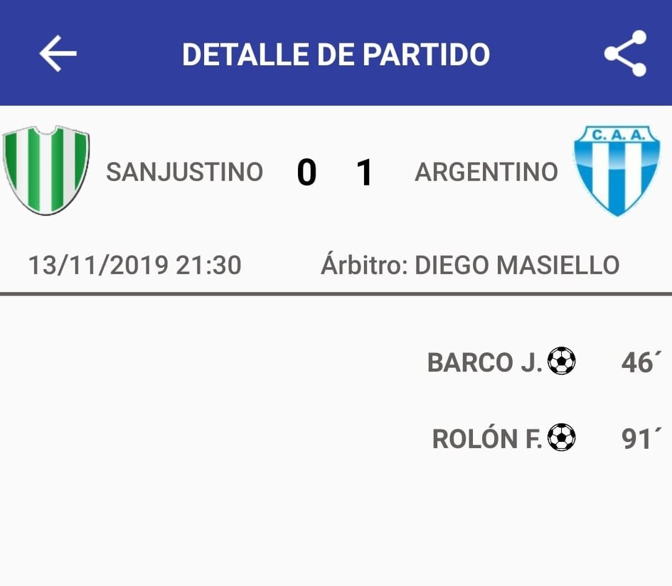 Argentinos San Carlos: 2 Sanjustino: 1 Argentinos: Luis Guillermo Leiva, Iván Salzmann, Ignacio Giay, Matías Chavarini, Matías Barberis, Francisco Iturraspe, Joaquín Latuf, Matías...