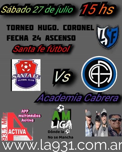 Santa Fe Fútbol, pretende acortar distancias y recibe al escolta, del torneo
