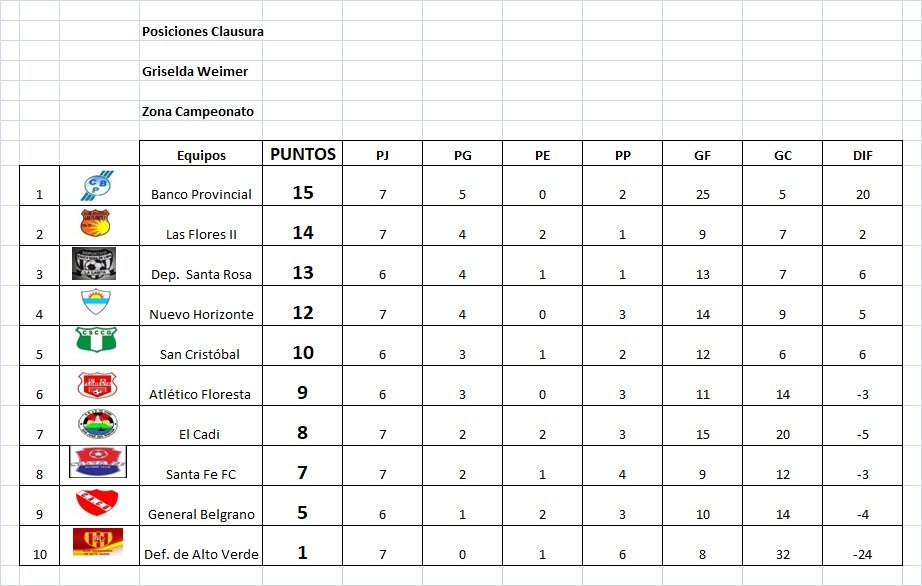⚽   Banco Provincial 15 (3 de Alan Chamorro, 3 de Maximiliano Plutino, 4 de Ismael Contera. 2 de Alexandro Lamertyn, Federico Canalis, Franco Martínez y Santino Fisicaro