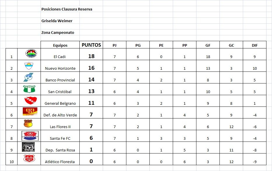 Reserva: El Cadi 1 (Esteban Toledo) – Nuevo Horizonte 2 (Hugo Peloso y Exequiel Romero). Expulsado: Lautaro Castabel (EC). Árbitro: Abel Ojeda